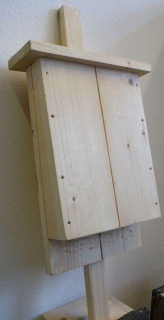 Die Fledermauskästen bestehen aus unbehandeltem Holz und sollten in mindestens 3 Meter Höhe oder höher z. B. an Hausfassaden oder am Stamm von Bäumen aufgehängt werden. Wichtig ist, dass die Kästen überwiegend nach Süden gerichtet sind und so angebracht werden, dass die Tiere einen freien, ungehinderten Anflug haben. Ideal ist, wenn mehrere Kästen (3 bis 5) in einem engeren Umkreis hängen.