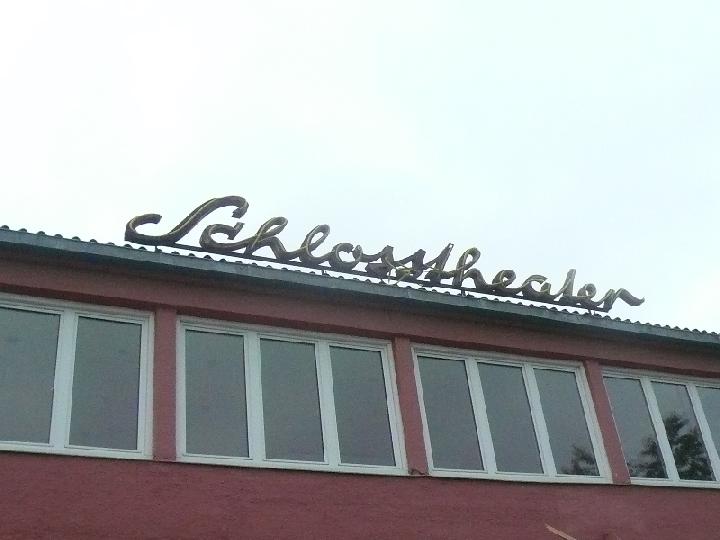 Heute am 3. Juli 2012 liegt das Schlosstheater ruhig in der schwülen Juliluft, der Vorplatz mit Deckenpaneelen, mit Plastiksäcken, mit Müll bestückt. Nachdem Ende der letzten Woche eifrige Helfer in Plastikkleidung und mit Atemmasken alles rausgerissen hatten, was rauszureißen war, auch das schöne 'Schlosstheater' Neonleuchtschild wurde zerstört, scheint nun die Ruhe vor dem Sturm angesagt. Bald werden die Abrissbirnen und Abrissscheren zum Einsatz kommten. Weg mit dem alten Scheiss, was denn sonst? |