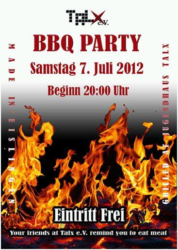 Am 07.07.2012 findet erneut die heißbegehrte BBQ-Party des Jugendhauses Talx in Eislingen statt.