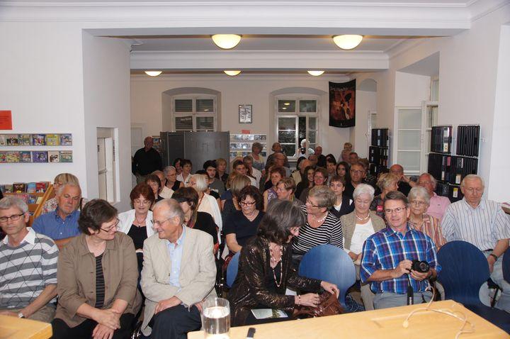 Die Präsentation des Werkes in der Stadtbücherei fand so großen Anklang. Die Moderation des Abends lag in den Händen von Irene Ferchl. Florian Ahlborn (Stuttgart) stimmte mit Gedichten der Stelen-Autorinnen und Autoren auf das Werk ein. Musikalisch umrahmt wurde der Abend von Axel Kühn (Tübingen) am Kontrabass.