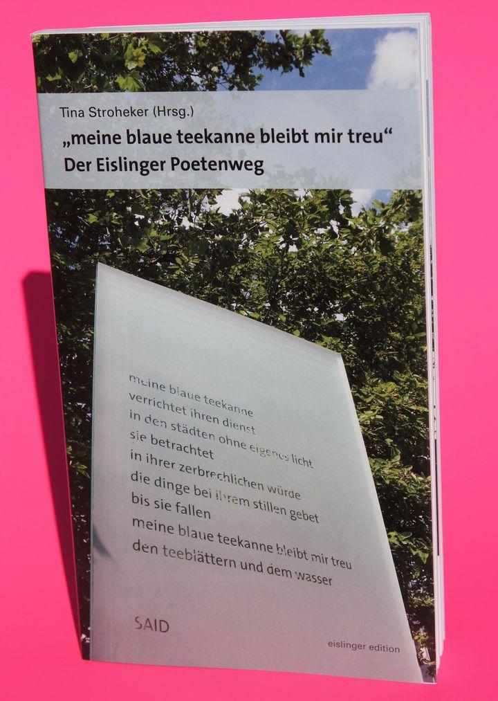 Im Rahmen der eislinger edition des Kunstvereins Eislingen ist jetzt als zehnter Band „Meine blaue Teekanne bleibt mir treu“ erschienen. Die Herausgeberin Tina Stroheker hat in diesem Werk nicht nur die bisher im öffentlichen Raum aufgestellten Gedichte zusammengetragen, sondern auch ihr persönliches Tagebuch zum entstehen des Weges aufgeschrieben.