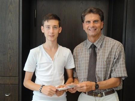 Oberbürgermeister Klaus Heininger wünscht sich, dass Osman S. weiterhin für Recht und Ordnung einsteht und übergab ihm als kleines Dankeschön zwei Kinoeintrittskarten und Verzehrgutscheine von McDonald, über die sich der Jugendliche sichtlich freute.