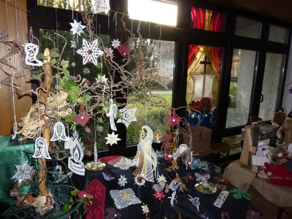Fleißige Hände haben viele kreative Ideen umgesetzt und das Gemeindehaus in einen quirligen und lebendigen Marktplatz verwandelt. Am vergangenen Samstag konnte Diakon Tino Hilsenbeck viele Besucher im Gemeindehaus begrüßen, die mit großem Interesse das Angebot an den „Marktständen“ studierten. Dieses umfasste die bekannt guten Marmelade-Kreationen, feine Klöppelarbeiten, handwerklich gefertigte Engel und Hirten, eine Vielzahl von Puppenkleidern, Schals, Strickwaren, Filztaschen, handgestrickten Socken, weihnachtliche Glitzer- und Perlensterne, alles in Eigenarbeit und in vielen Stunden vorbereitet. Auch die eine oder andere flüssige Köstlichkeit wurde angeboten, neben den Produkten aus dem „Eine-Welt-Laden“ und dem Angebot an Wohlfahrtsbriefmarken. Ebenso gab es einen Fotokalender mit Motiven aus der Christuskirche zu erwerben. Der Erlös dieses Kalenderverkaufs ist für das Projekt der „Kircheninnenrenovierung“ bestimmt. Auch in den nächsten Wochen wird dieser Kalender noch angeboten, z.B. beim Kirchencafé nach den Gottesdiensten.