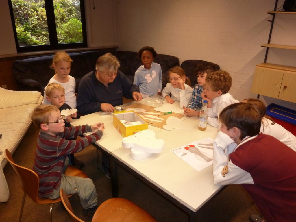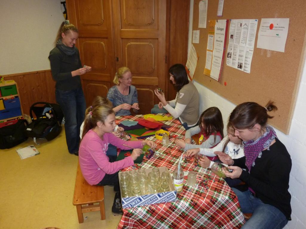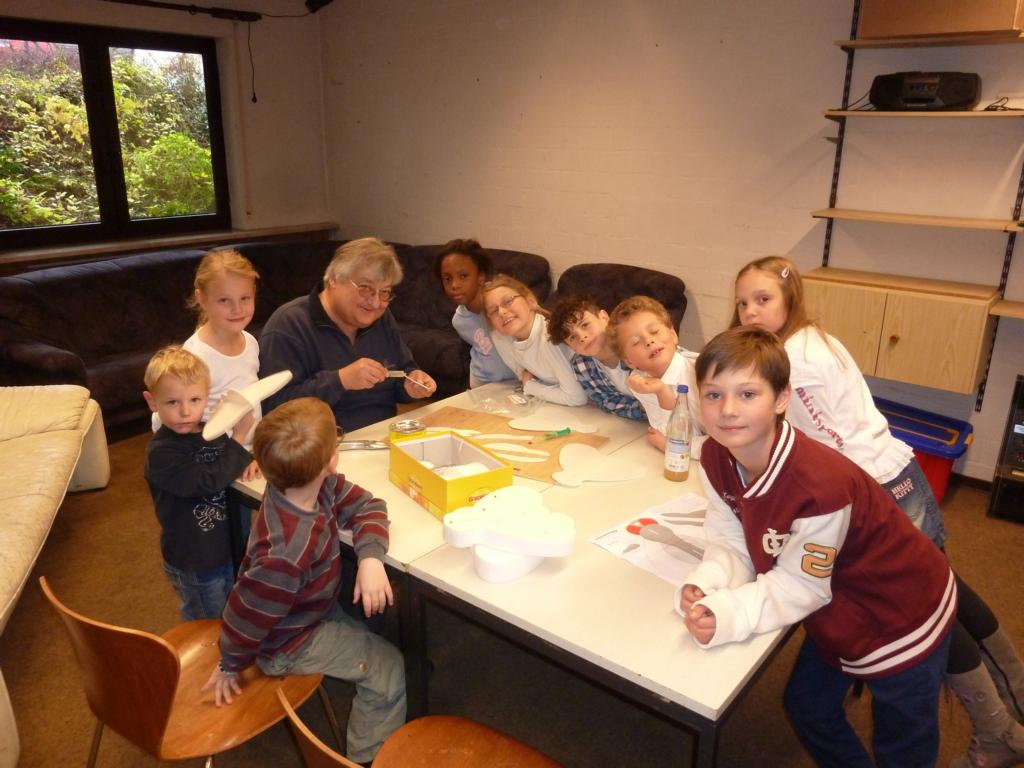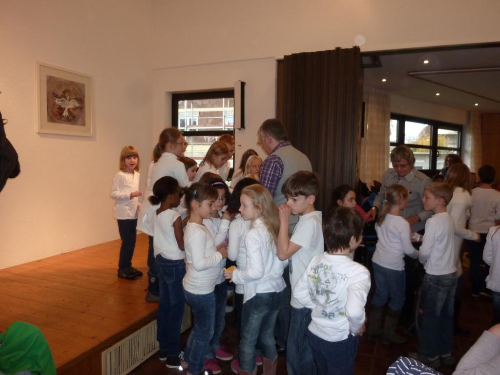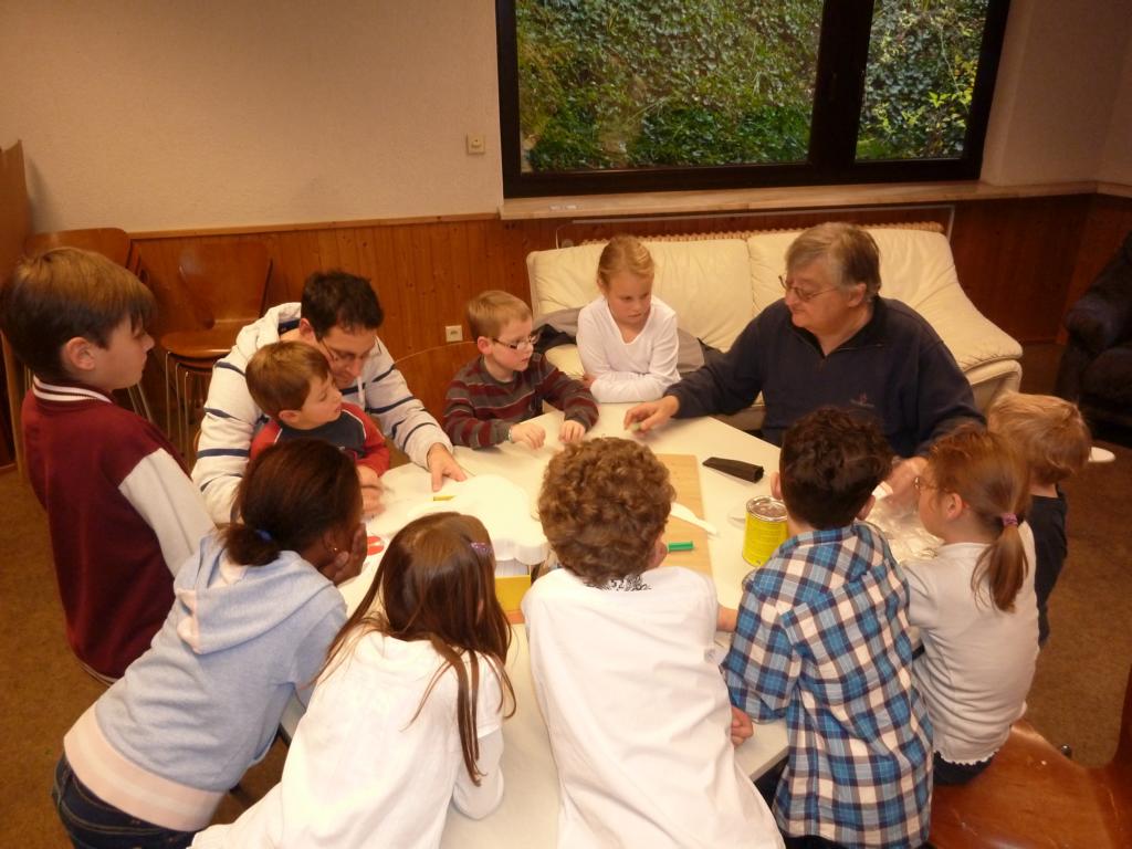 Das Kaffee- und Kuchenbüffet war wieder wohl sortiert und lockte mit einem vielseitigen Angebot, das gerne wahrgenommen wurde. Gerade richtig zur Kaffeezeit kam der Auftritt de Schulchores der Schillerschule und Leitung von Susanne Pietrass. Mit großer Begeisterung boten die Kinder ein tolles Programm im vollbesetzten Gemeindehaus, das sie mit einer Zugabe beendeten. Das Spiel- und Bastelangebot für die kleinen Bazarbesucher wurde begeistert angenommen, so gab es u. a. die Möglichkeit, einen Flieger zu basteln und Gläser bunt zu verzieren, die zu Hause z. B. als kleines Deko- oder Teelicht gute Verwendung finden werden.