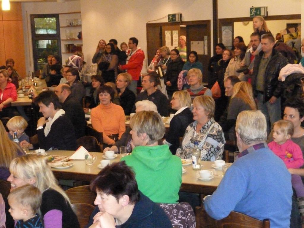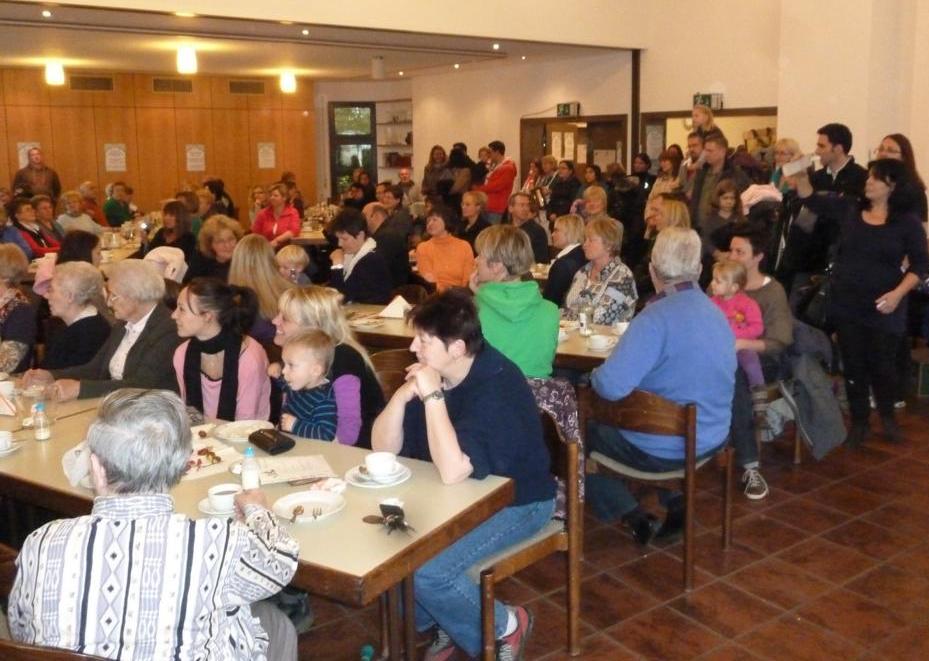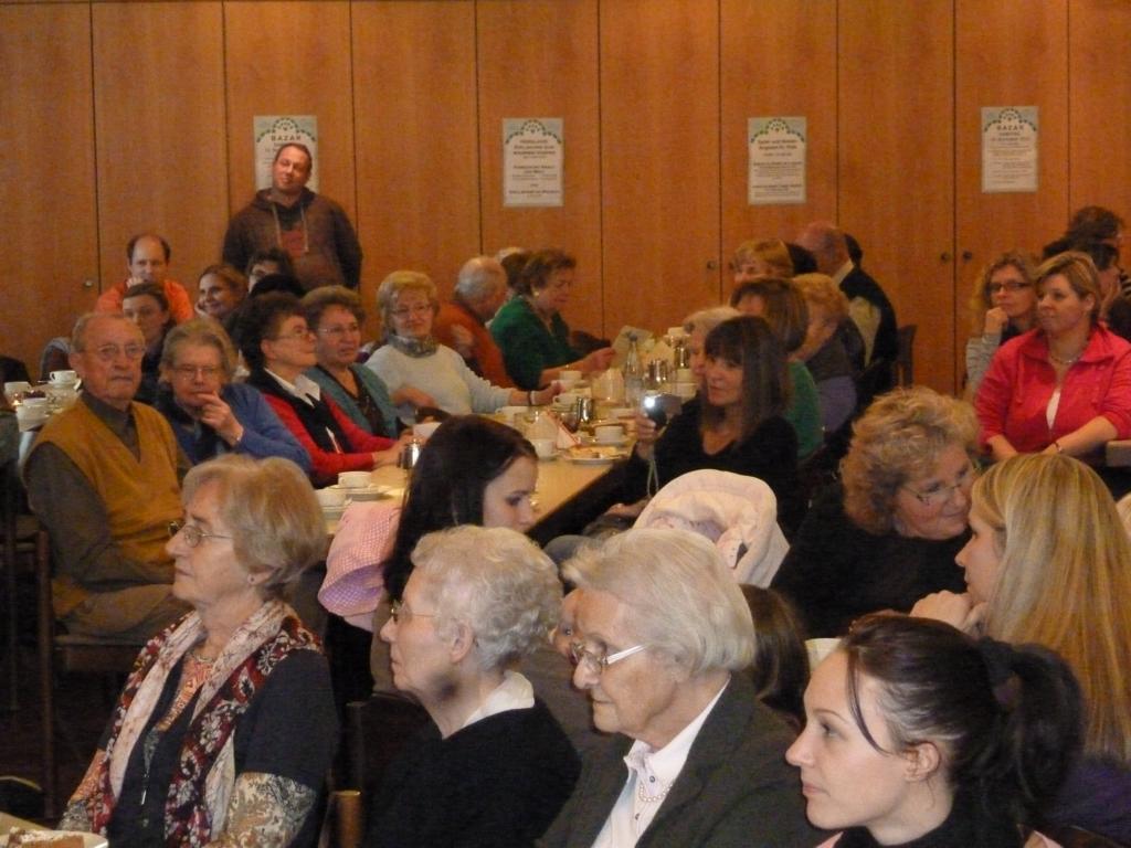 Am späten Nachmittag lockten verführerische Düfte zum Abendessen. Grillrote mit Brötchen und Sauerkraut mit Kassler und einer Scheibe köstlichen Bauernbrotes luden die Gäste zum gemeinsamen Essen ein. Nur schade, dass dieses Angebot nicht noch ein paar weitere Liebhaber animieren konnte, hatten sich doch die vielen fleißigen Helfer und Helferinnen in der Gemeindehausküche bestens auf einen großen Ansturm vorbereitet. Trotzdem: es gab ausführlich Gelegenheit, bei einem Schwätzchen an den schön gedeckten Tischen sich gut zu unterhalten und den Einen oder die Andere aus der Gemeinde mal wieder zu sehen und Kontakte zu pflegen. Ein herzlicher Dank gilt allen, die zum Gelingen des Bazars beigetragen haben, der auch einen guten finanziellen Erfolg erbrachte.