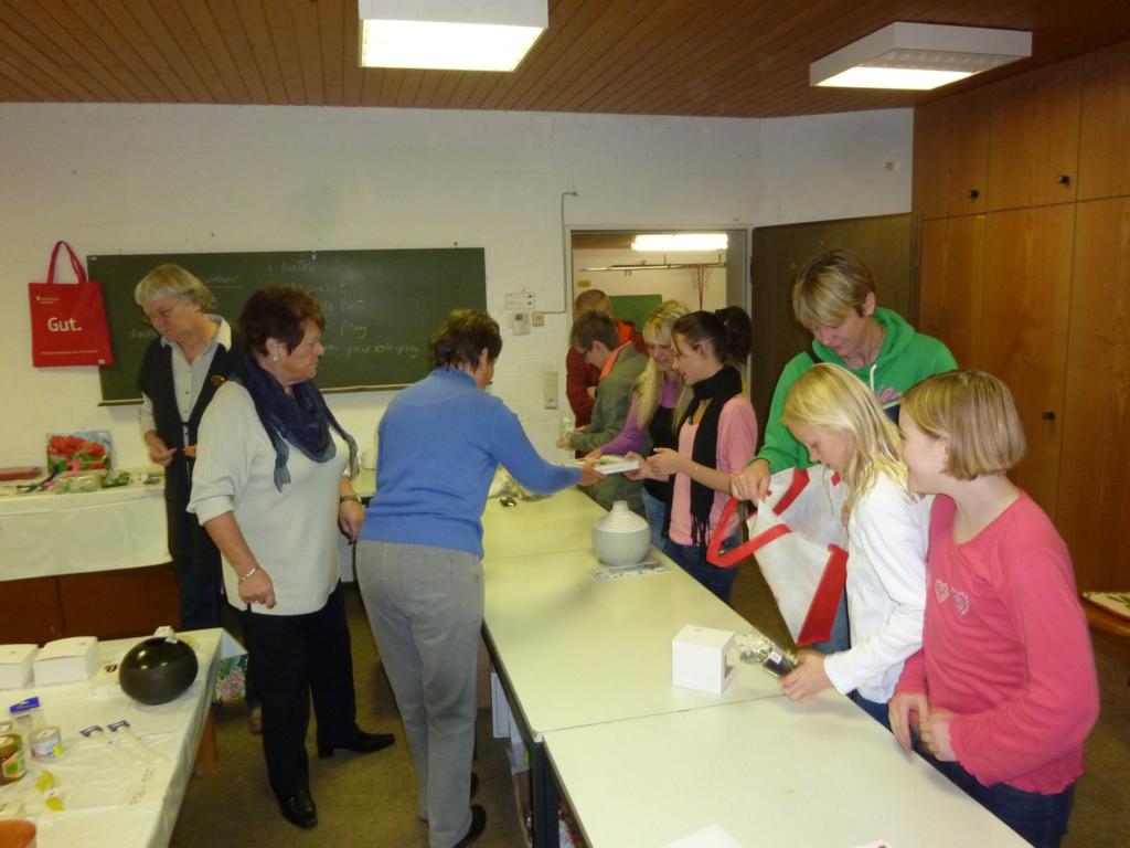 Einige Konfirmanden der Kirchengemeinde betätigten sich als eifrige Losverkäufer. Die gut bestückte Tombola bot manchen Anreiz, Lose zu erwerben und sich über die Gewinne zu freuen, die von der Eislinger Geschäftswelt zahlreich gespendet wurden.