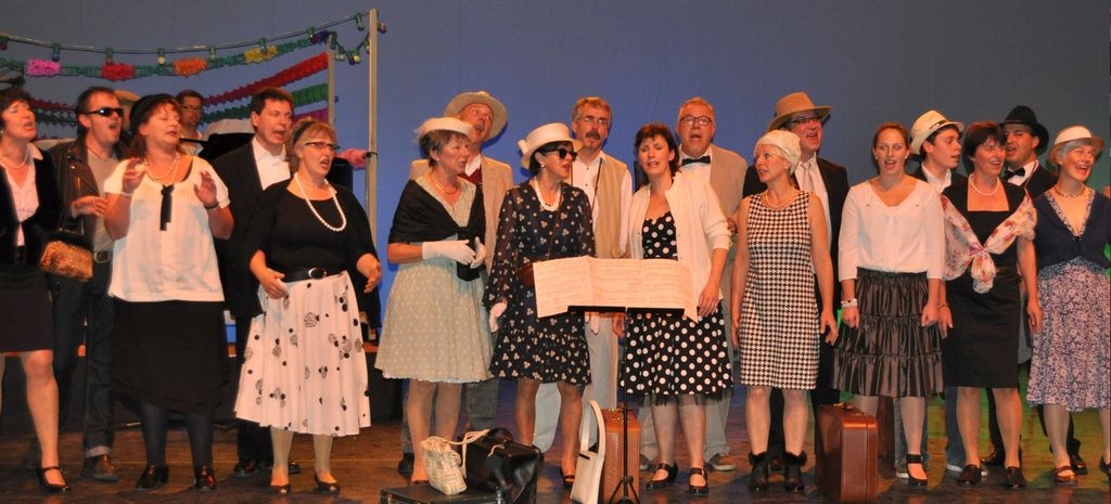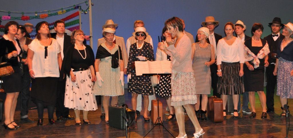 Am gestrigen Samstag gastierte Salto Vocale vom Liederkranz Eislingen in unserer Partnerstadt Oyonnax imfranzösichen Jura. Zusammen mit „Chansons à Voir“ gestalteten Sie einen unterhaltsamen und farbenprächtigen Auftritt im Centre culturel Aragon, wie dem Bildmaterial aus Frankreich gut zu entnehmen ist. |