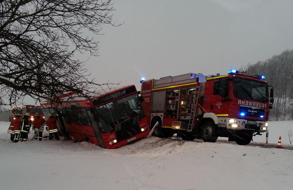 Die Feuerwehr aus Lauterstein forderte den Rüstwagen der Eislinger Feuerwehr nach. Grund für den Einsatz war, dass ein Linienbus aufgrund der Schneeglätte von der Fahrbahn rutschte und in der dortigen Böschung hing. Es bestand die Gefahr, dass der Bus vollends auf umstürzte. Daher wurde der Bus mit dem Material, dass auf dem Rüstwagen vorhanden ist gesichert.