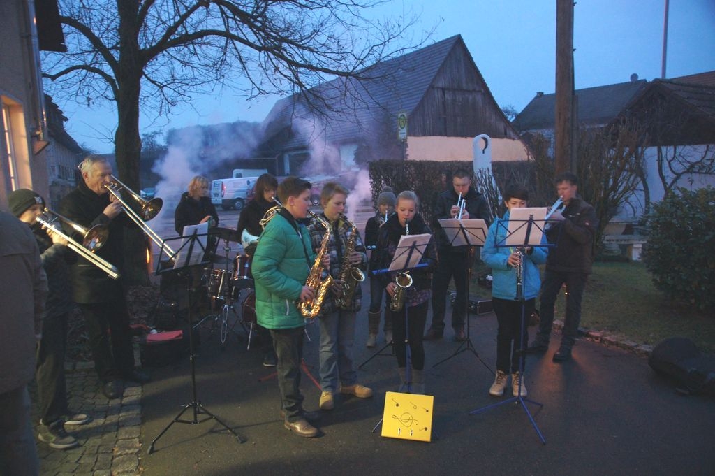 Schmalzbrot, Würste, Glühwein und Feuerzangenbowle im Angebot, da tun ein paar Regentropfen der guten Stimmung keinen Abbruch. Nach Eröffnungsständchen der Jugendkapelle des Musikvereins Eislingen war diese Veranstaltung wieder Treffpunkt für Krummwälden und Umgebung. |