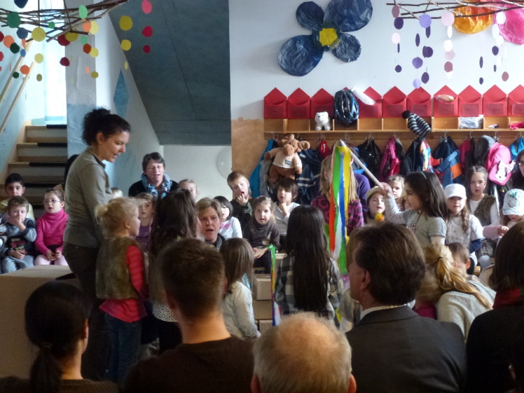 Offizielle Einweihung der Kinderkrippengruppe Pfiffikus wird nach unten erweitert - schon 5 Kinder zwischen 1 und 3 betreut 28.1.2013 - Peter Ritz