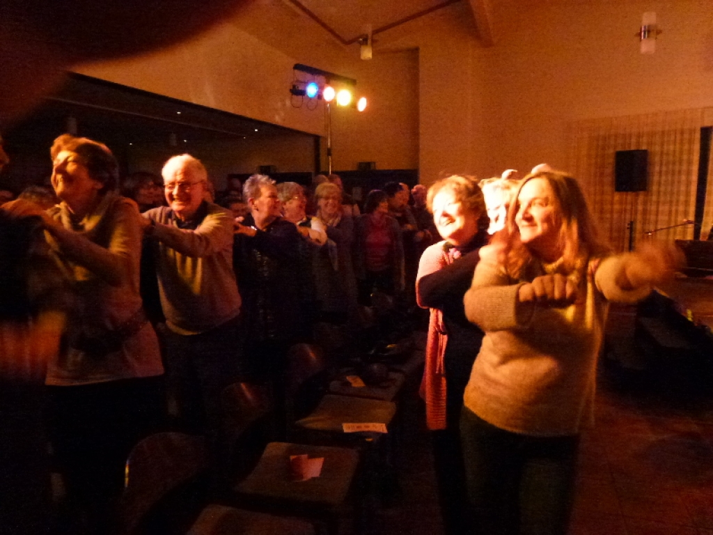 Muss man sich sonst in Kabarettvorstellungen vor der Einbeziehung des Publikums fast fürchten, brachten die drei Münchner KabarettistInnen ihr Gegenüber in begeisterte Stimmung, man übte anti-agend Auf und Nieder, versuchte den altersdeprimierten Protagonisten durch begeisterte Begrüßungsrufe die Depressionen zu vertreiben, lachte lauthals und raumgreifend und sang gefühlig Lieder mit, 17 Jahr, blondes Haar, in fein verändertem Text.