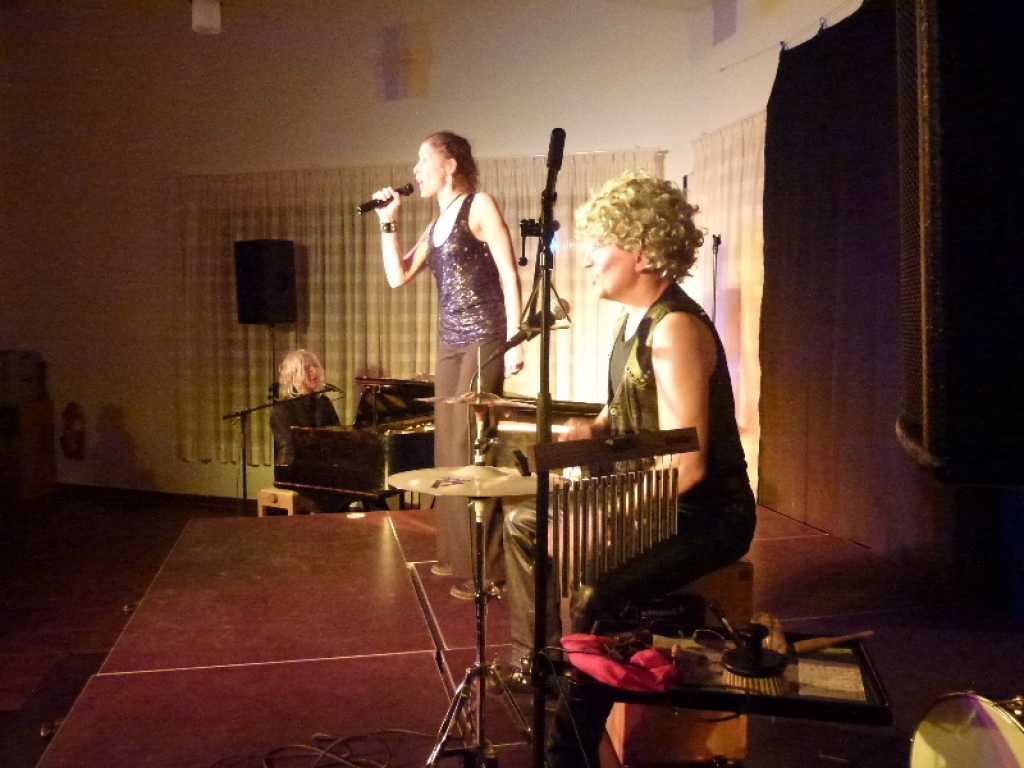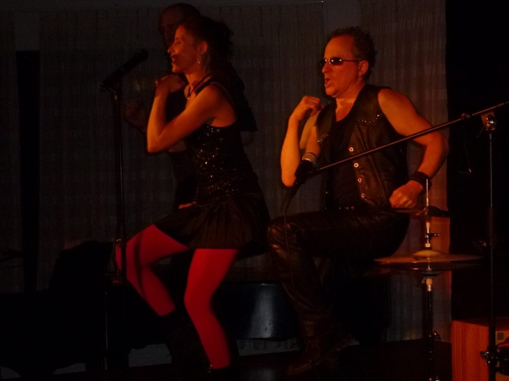 Kurzweilig, spritzig, ironisch und nicht ohne Tiefgang zogen Rahel Comtesse als Sängerin Manu, die immer jung sein will und sich vor dem Altern fürchtet, Peter Krempelsetzer als Schlagzeuger Hartmut, der alternde Rockstar, der penetrant an junge Frauen herankommen möchte („so zwischen 28 und 34“) und es nicht (mehr) schafft oder der eher philosophische Steffen Zander als Felix am Piano das altersgemischte Publikum im Christuskirchensaal in ihren Bann.