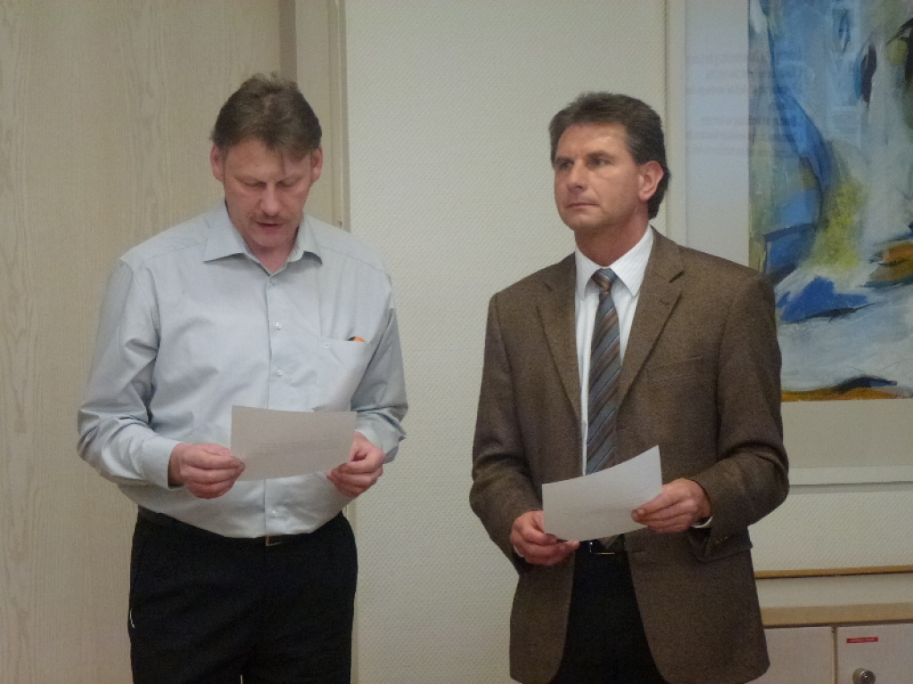 Spaß habe es ihm gemacht, und viele interessante Erfahrungen habe er gemacht, so verabschiedete sich am Montag Stadtrat Klaus Nickl aus dem Gemeinderat. Als idealer Gemeinderat wurde er von OB Klaus Heininger gelobt, verwurzelt in Vereinen, im Elternbeirat, in führender Position bei einem örtlichen Unternehmen, mit vielen Kontakten in die Bevölkerung. Nach vier Jahren wurde es ihm einfach zuviel. Altstadtrat Klaus Nickl und Neualtstadtrat Martin Leyrer |
