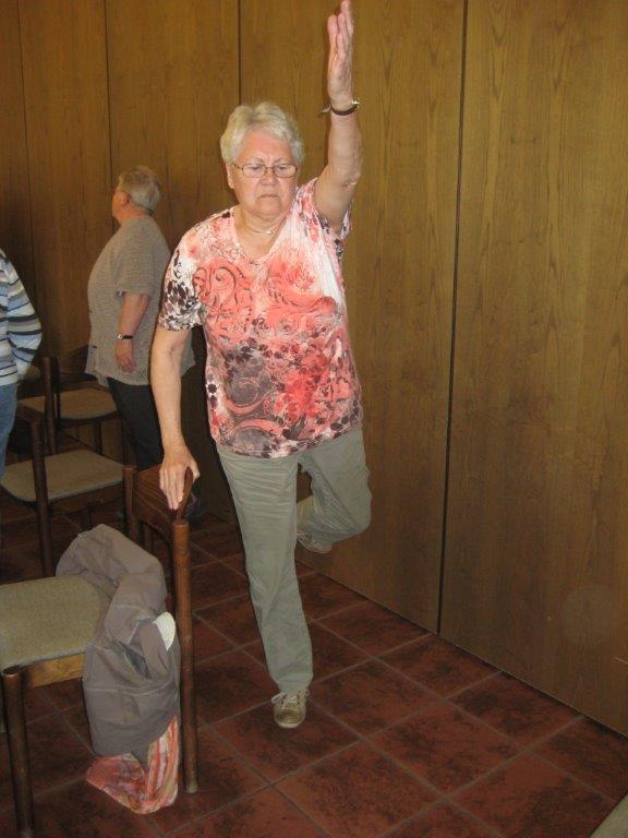 Bevor die Kaffeetafel eröffnet wurde, begrüßte Diakon Hilsenbeck Frau Bärbel Beinhauer, Übungsleiterin beim DRK Göppingen, die im Anschluss an das gemütliche und ausgiebige Kaffeetrinken für Bewegung sorgte. Nacken-, Hals-, Becken-, Bein-, Knie- und Ellbogenmuskeln wurden sowohl im Sitzen wie auch im Stehen mit seniorengerechten Übungen trainiert. Wie im Flug verging die Zeit und es zeigte sich, dass man sich auch die eine oder andere Anregung für ein leichtes Bewegungstraining zuhause mitnehmen konnte. Herzlicher Applaus dankte Bärbel Beinhauer für die beschwingte Übungseinheit.