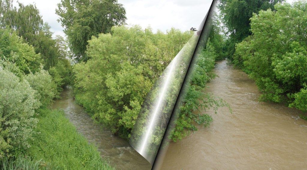 Wen wunderts? Nach mehreren Tagen Dauerregen können die Böden keinen Wasser mehr speichern und so sind die Bäche zu reißenden Flüssen geworden. Hier ein Vergleich der Wassermenge der Krumm von Fronleichnam und heute. Die Krumm gestern (30.5.) und heute 31.5.2013) |