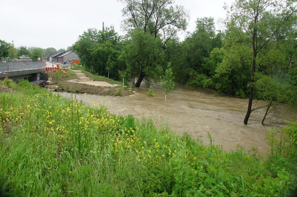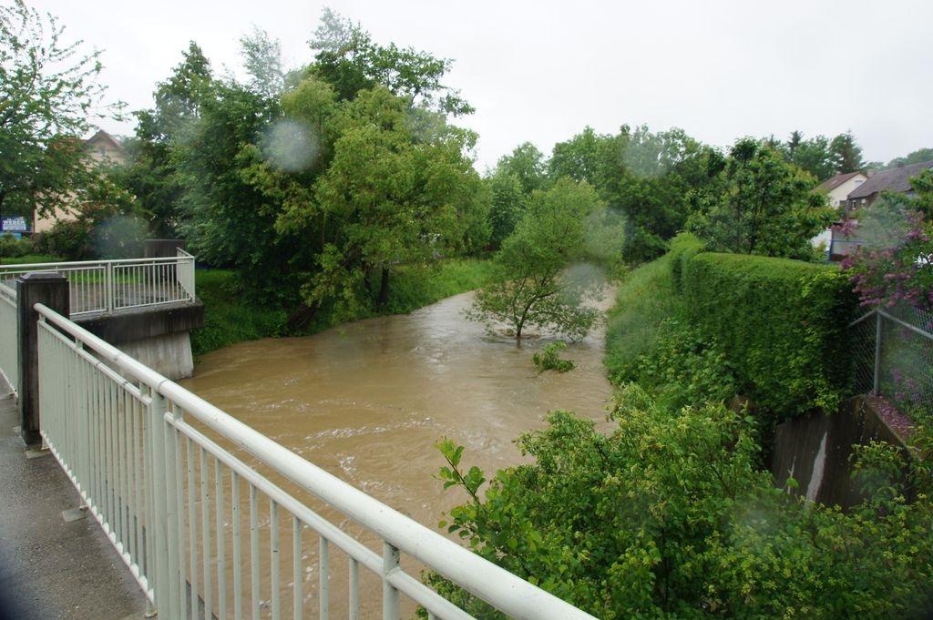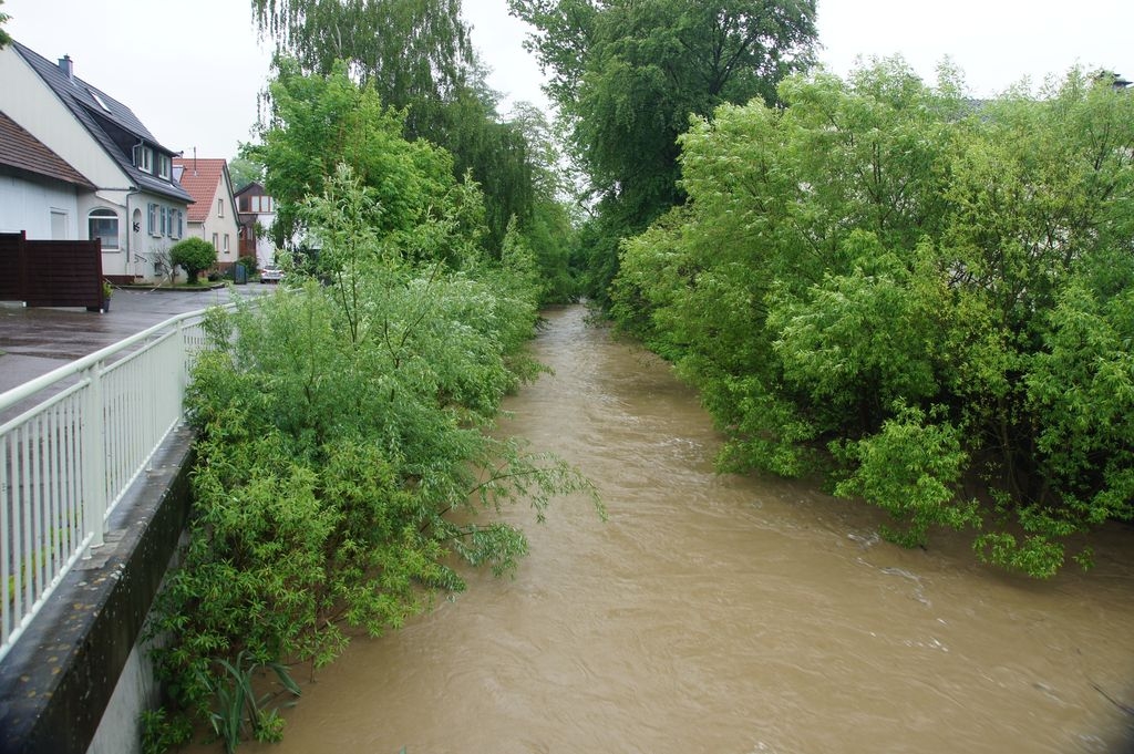 Dauerregen..Krumm und Fils sind reißende Flüsse Bis jetzt greifen Eislingens Hochwasserschutzmaßnahmen 31.5.2013 - Hans-Ulrich Weidmann