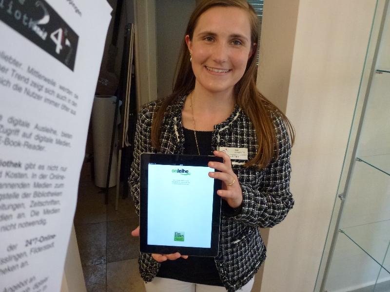 Bibliotheksleiterin Sarah Ripp erläuterte das Prinzip der ebooks, die für den Nutzer weiterhin kostenlos sein werde, allerdings ebenfalls wie die realen Bücher nur für maximal zwei Wochen ausgeliehen werden können. Toll sei, dass die ebooks jederzeit auf ein Tablet, einen PC oder ein iPad oder iPhone heruntergeladen werden kann, zum Beispiel auch Sonntagnacht, wenn man am Montag in Urlaub fährt.