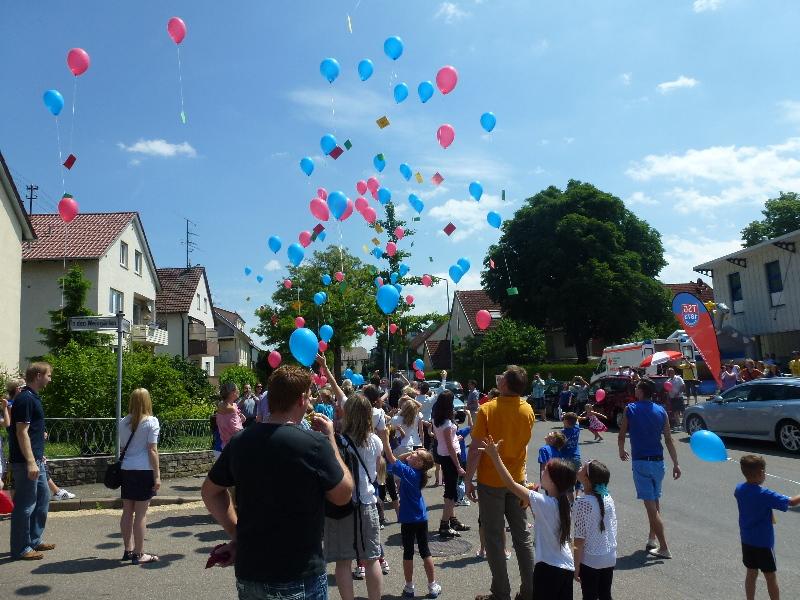 Ein gemeinsamer Start von Luftballonen vor dem Sportzentrum leitete dann zum Familiensporttag mit Speis und Trank und Begegnungen im Sportzentrum über.