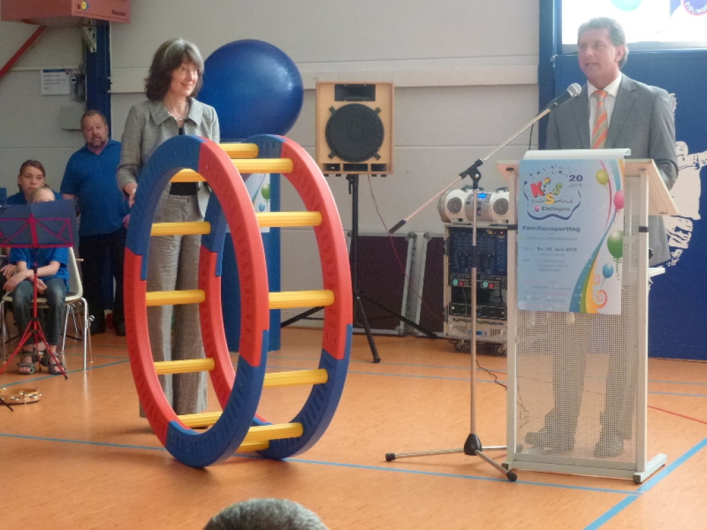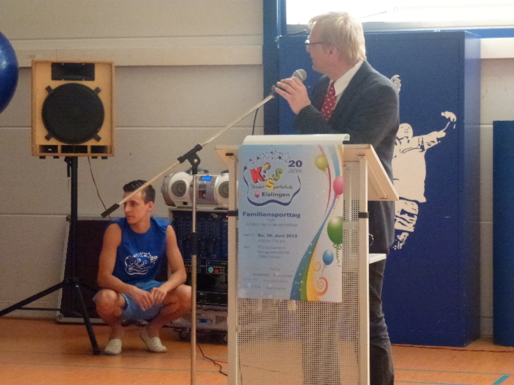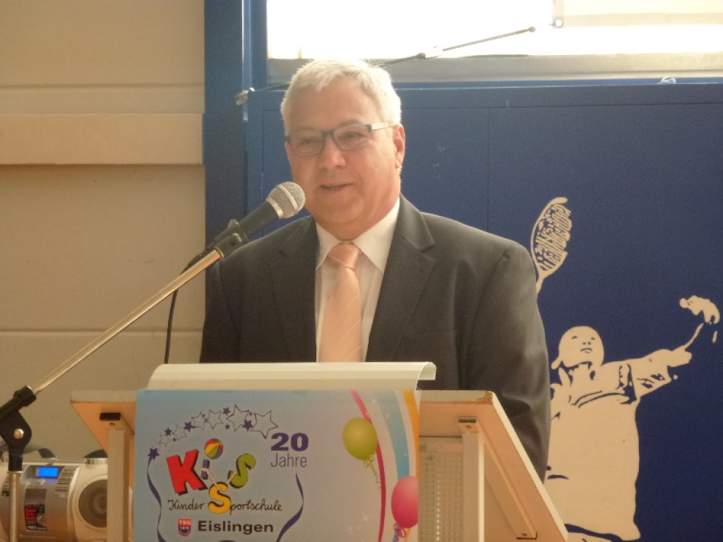 TSG-Vizepräsident Ulrich von Buch begrüßte und führte durch das Programm,OB Klaus Heininger hatte extra eine Ehrung der Kreisfeuerwehr verlassen, um der TSG zu 20 Jahre KISS zu gratulieren und ein schönes Geschenk mitzubringen, und Martin Sauer, Vizepräsident der Turngau Staufen, überbrachte Sarah Müller und Nicole Schütze Urkunden der Anerkennung der Leistung, die allerdings nur zwei Jahre Gültigkeit haben (dann muss neu Leistung gebracht werden).