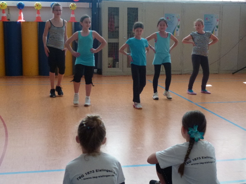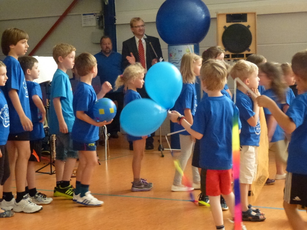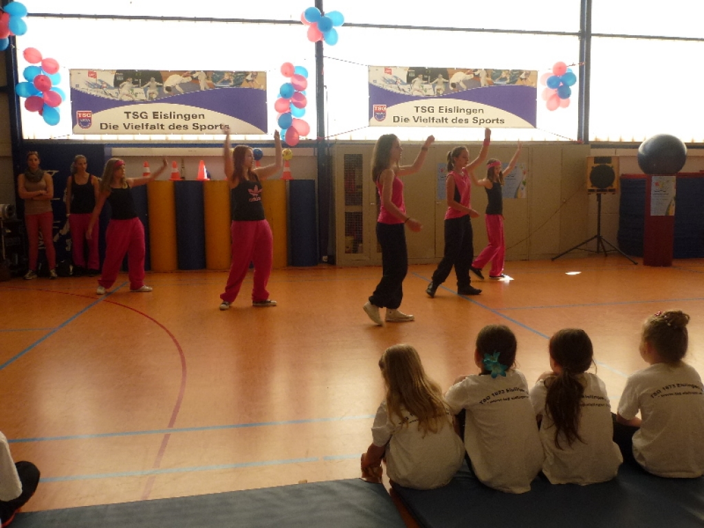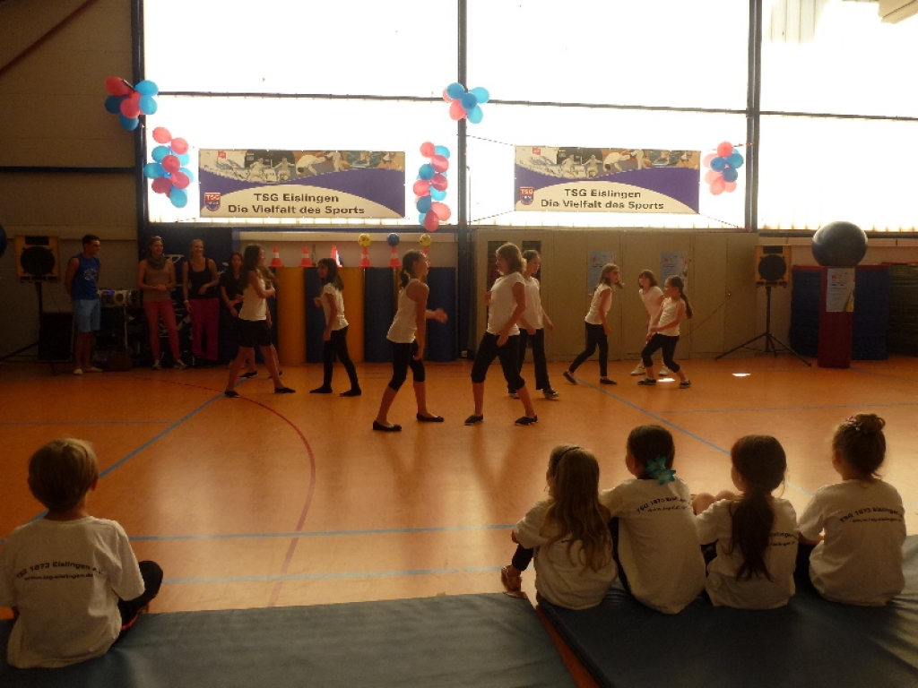 Nach den drei Reden waren die Kinder weg, kamen aber wieder zu einer munteren Vorführung ihres Könnens, am Trampolin oder auf dem Schwebebalken, oder bei einem der zahlreichen Hiphop-Gruppen.