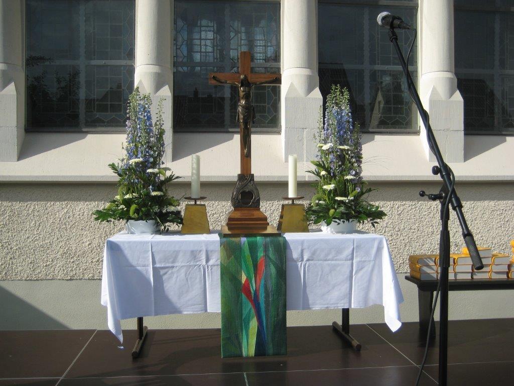 Der schöne geschmückte Altar beim GD im Kirchgarten