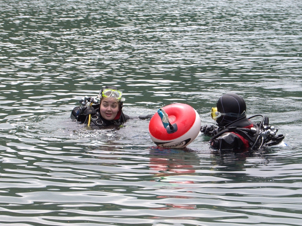 Auch das Tauchen kam nicht zu kurz. Im nahegelegenen Blindsee konnten die Seepferdle zahlreiche Bergseetauchgänge absolvieren. Der See liegt auf ca. 1000 m über dem Meeresspiegel. Grund zum Feiern: Sarah Weber konnte nach bestandenen Abnahmen das Deutsche Tauchsportabzeichen in Bronze von Tauchlehrer und Ausbildungsleiter Carsten Schöps entgegennehmen.
