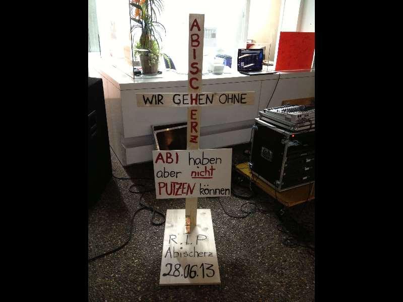 Dem entsprechend sah man viele hängende Köpfe unter den Abiturienten. Die Freude über das Abitur konnte so nur verhalten aufkommen. Symbolisch wurde deswegen ein Kreuz aufgestellt (Foto).
