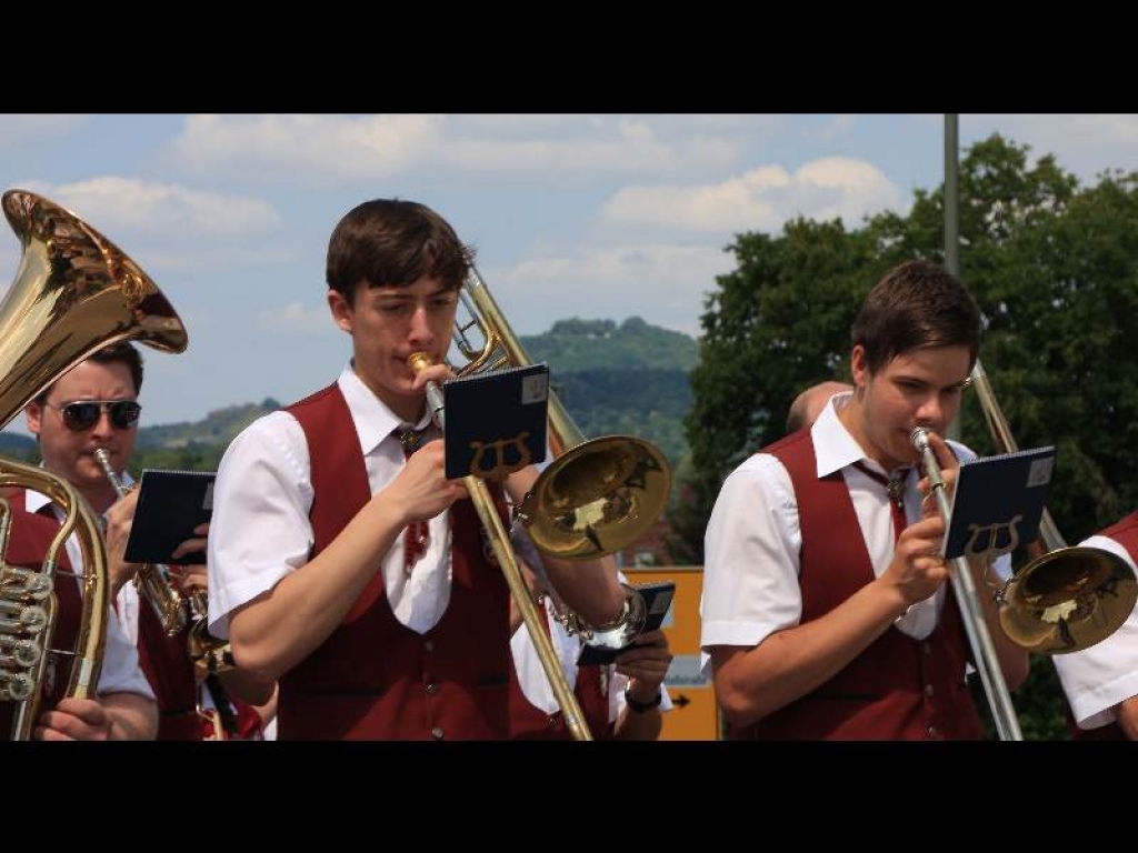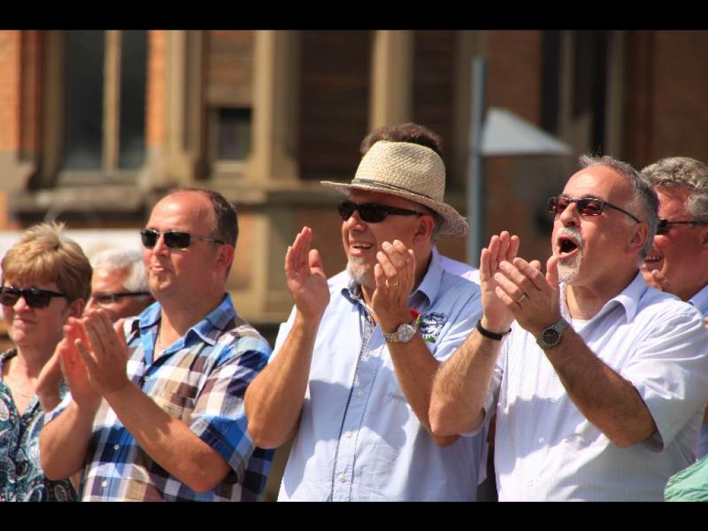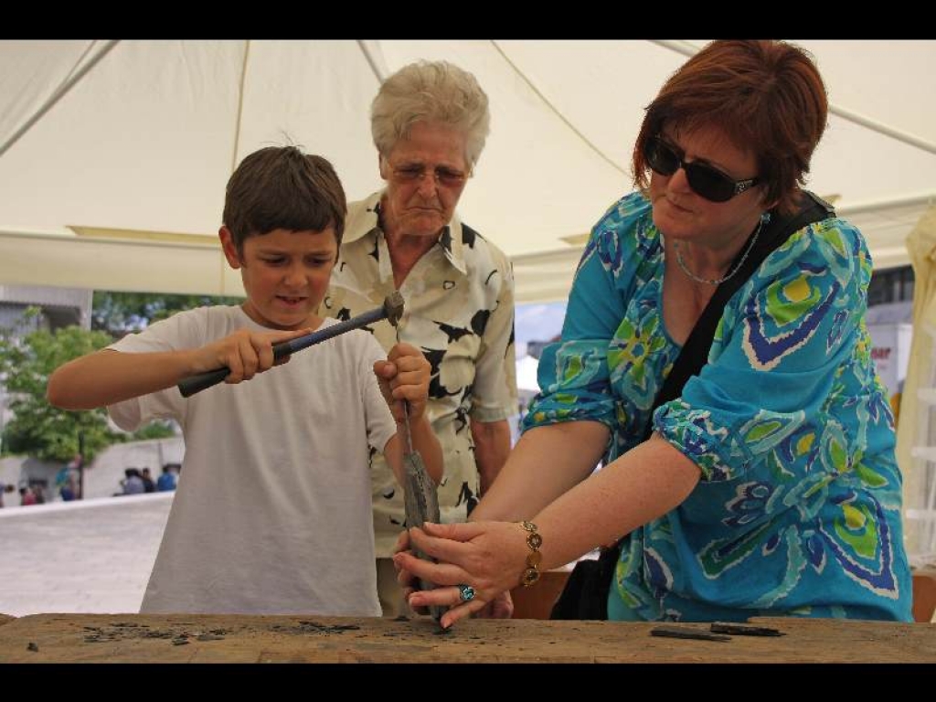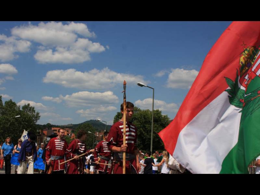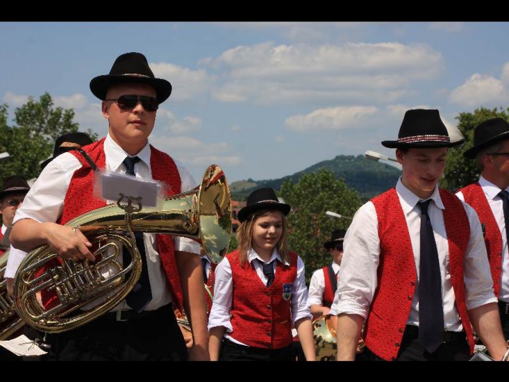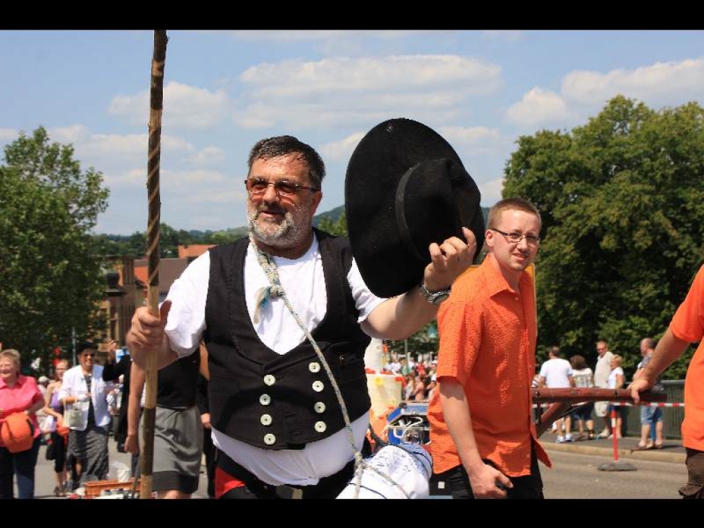 der Klopfplatz der Saurierfreunde macht Spaß |  Vielfalt mit Partnern |  der Zug durch die Hauptstraße Richtung Brücke |