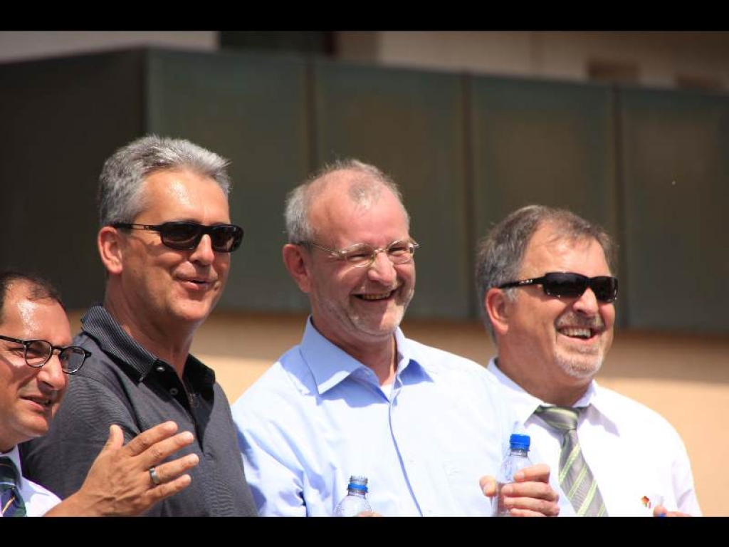die Prominententribüne mit OB und Frau links |  schmissige Musik belebte den Zug |  morgens auf der Baustelle und mittags Indianer |