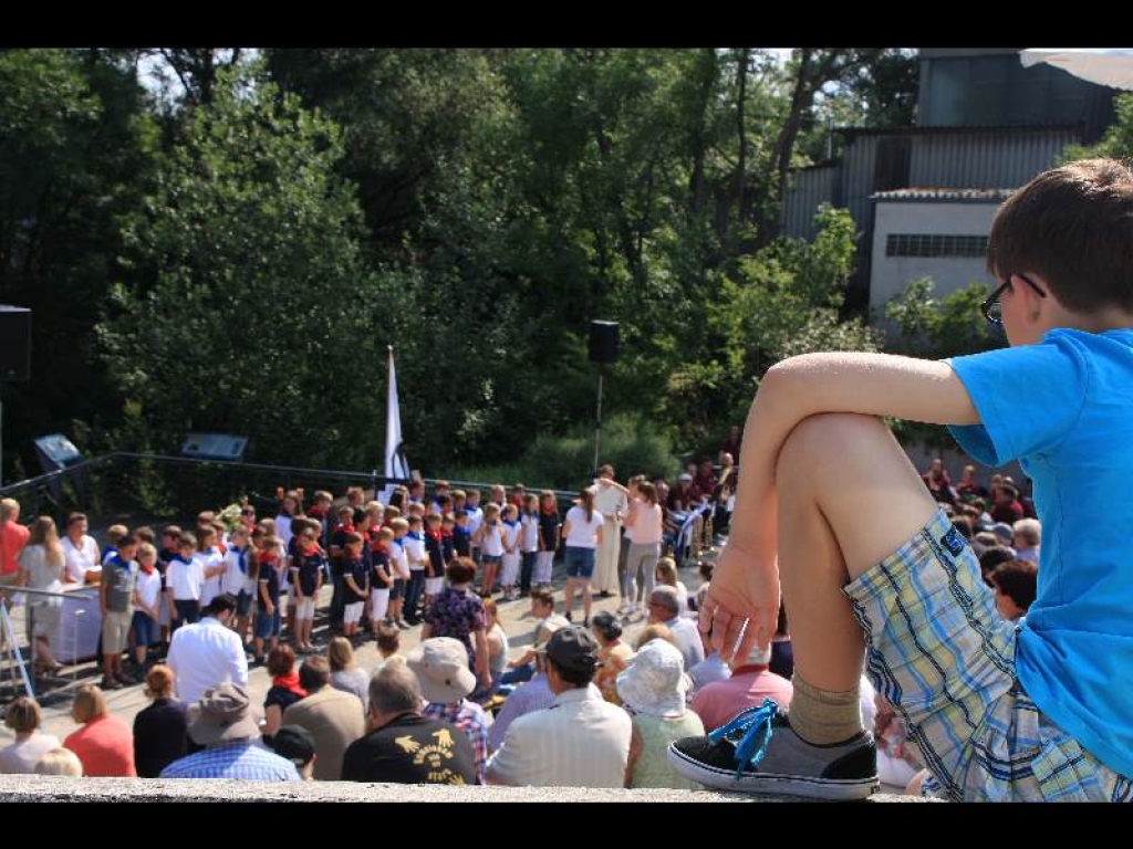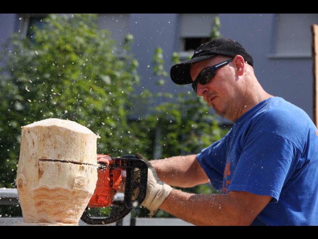 FC Eislingen: Sport statt Gewalt |  Skulpturen mit der Kettensäge |  die Filsterrassen mit Schülern beim Gottesdienst |