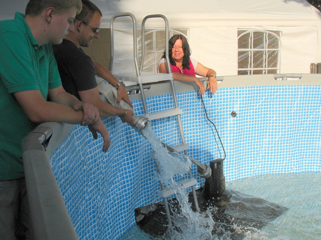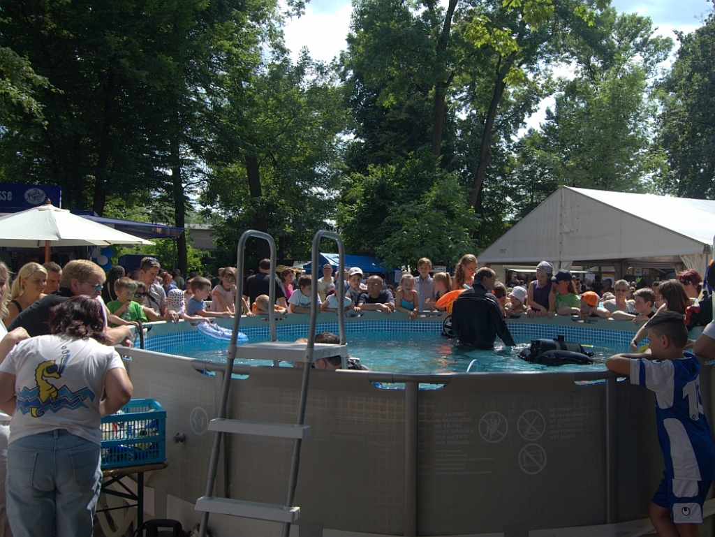 Am Freitag vor dem Umzug wurden bereits die Vorbereitungen für die Stadtfestaktivitäten im Schlosspark getroffen. Neben dem Crepes-Stand bauten die Tauchclubmitglieder den fünf Meter durchmessenden Pool zum Schnuppertauchen für Kinder und Jugendliche auf. Dieses Highlight des Stadtfestes ermöglichte es an den beiden Festtagen ca. 130 Jugendlichen, das Atmen unter Wasser mit dem Drucklufttauchgerät zu probieren.