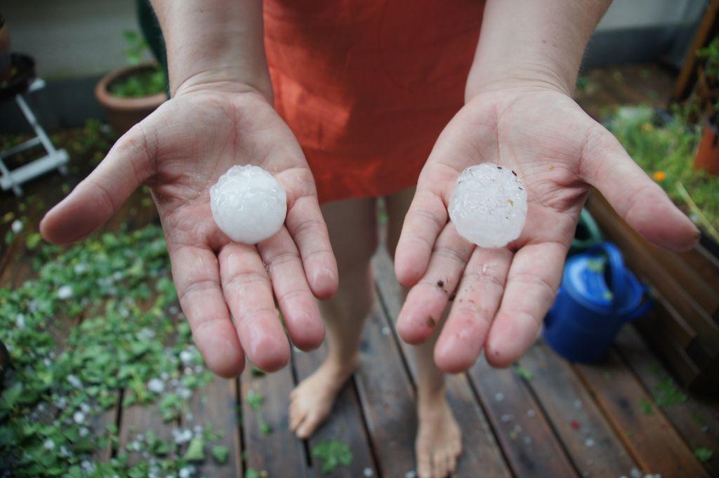 In kurzer Zeit verdunkelte sich aus Westen kommend der Himmel über Eislingen, Strumböen rissen die ersten Pflanzen um und dann brasselten handflächengroße Hagelkörner auf Eislingen nieder.