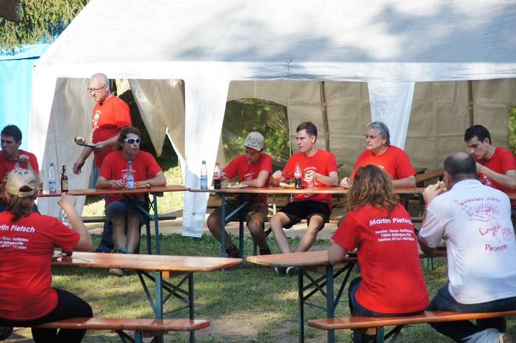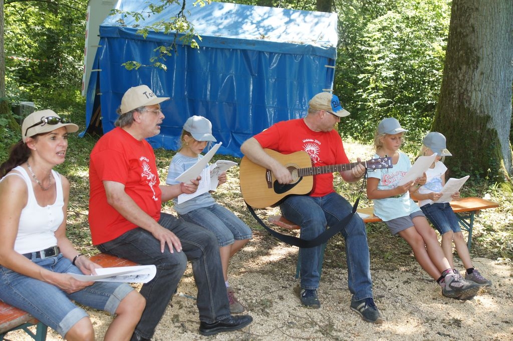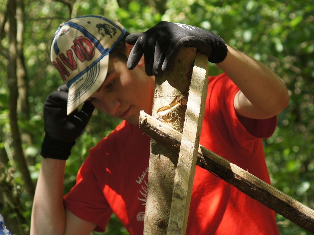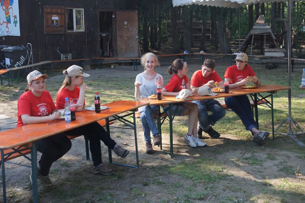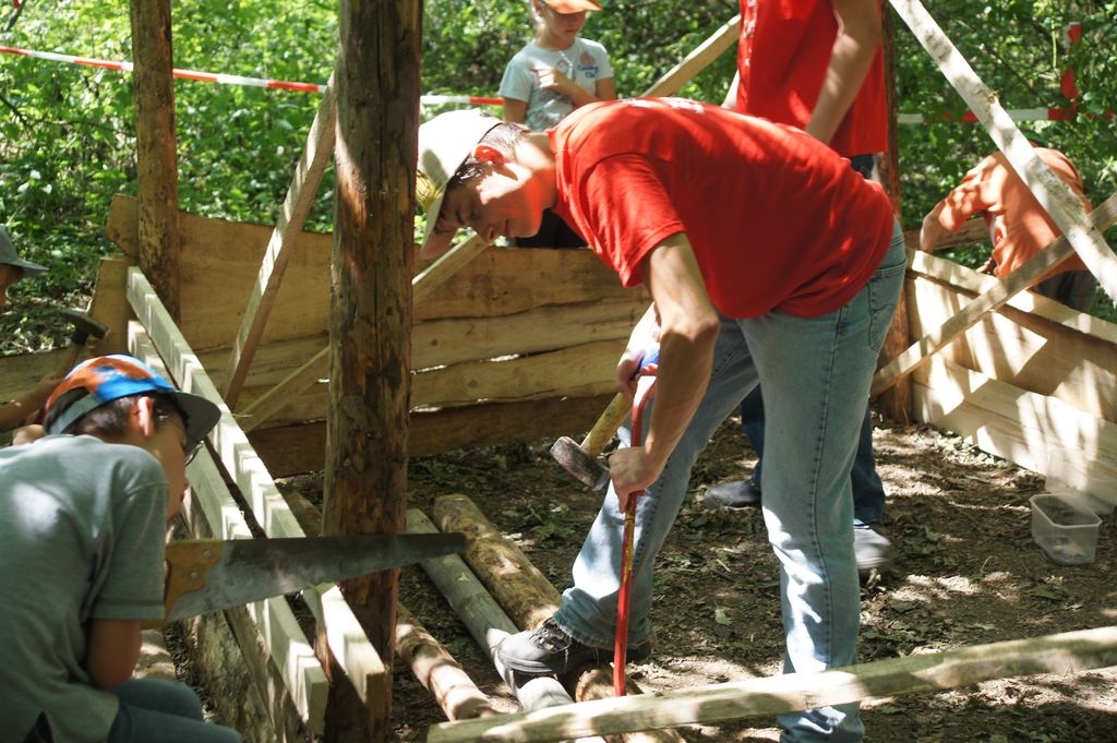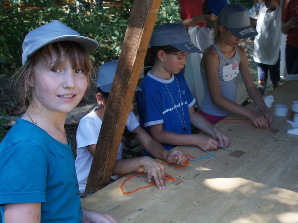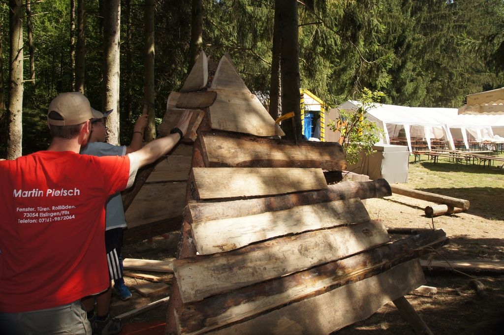 Bei strahlendem Sonnenschein startete die zweite Woche der Waldwunderwoche auf dem Pfadfinderplatz in Eislingen. Neben Freundschaftsbändern, Mützen bemalen und ägyptischem Liedgut stand natürlich der Hüttenbau wieder ganz groß im Kurs. Und ganz zum Motto passend entsteht mitten in dem Hüttendorf eine Pyramide ganz aus heimischem Holz. |