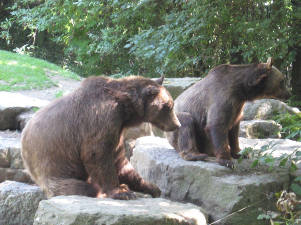 „Mit dem Tierpfleger unterwegs“ hieß das Programm, das die Schülerinnen und Schüler präsentiert bekamen. Sie waren allerdings nicht unter sich: Hunderte von Menschen waren an dem herrlichen Sommertag auf die gleiche Idee verfallen, sodass kräftig die Hälse gereckt werden mussten, um die Vielzahl der Bewohner des Wildparks auch betrachten zu können. Nicht zu übersehen waren jedoch die zwei von drei Braunbären, die sich fotogen auf ihren Lieblingsplätzen zur Schau stellten. Der dritte wollte von den Besuchern nichts wissen und verzog sich in den Wald.
