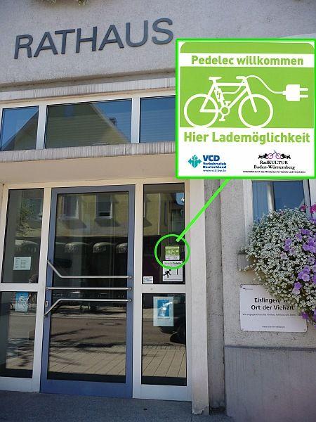 Der Verkehrsclub Deutschland VCD ruft in diesem Jahr über das Ministerium für Verkehr und Infrastruktur sowie die Kommunen zur Aktion „Pedelec willkommen“ auf. Hierbei wird das Hotel- und Gaststättengewerbe angesprochen, Ladestationen für Pedelecakkus einzurichten. Ziel ist es, eine flächendeckende Versorgung mit Lademöglichkeiten bereit zu stellen. Die Stadt Eislingen geht mit gutem Beispiel voran und versieht städtische Gebäude mit Lademöglichkeiten.