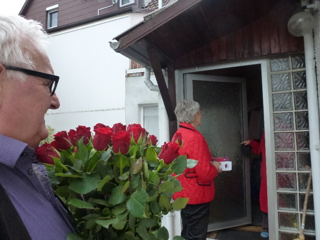 Morgen ist Bundestagswahl - letzte Informationen und Blumen im Angebot Mit Rosen und Sonnenblumen und allerlei Nützlichem werben die Parteien 21.9.2013 - Peter Ritz