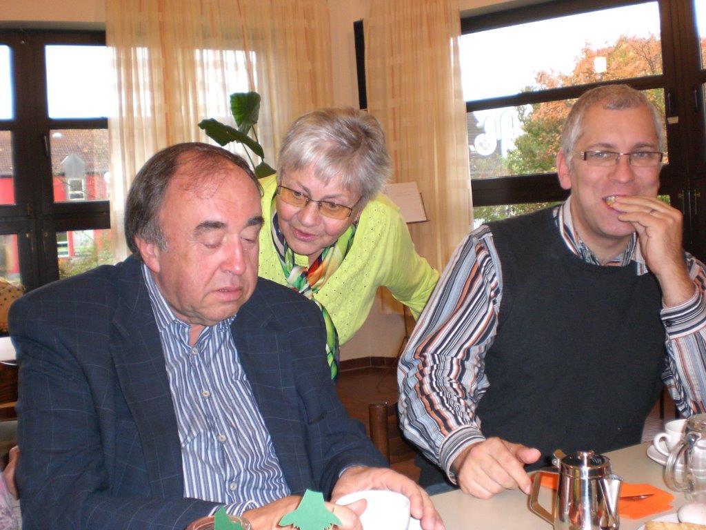 Im herbstlich geschmückten Gemeindesaal wurden die SeniorInnen von Herrn Pfarrer i. R. Ulrich Lauterbach herzlich begrüßt. Zum Erntedank sollte die Kartoffel besondere Aufmerksamkeit erfahren. Die Andacht begann mit dem Lied “ Wir pflügen und wir streuen“ mit Klavierbegleitung durch Eckhart Naumann. Herr Lauterbach erzählte das Gleichnis „Der reiche Kornbauer“ aus dem Lukas-Evangelium. Er schlug den Bogen zu unserer Gesellschaft mit Gedanken über Leute vom Stamme „Nimm“. Alles und Alle sind nur noch aus auf Wachstum. Er hätte gerne zwei Fragen an den reichen Bauern gestellt. Erstens: Könnte es sein, dass du nur noch deinen Besitz, deine Reichtümer und nur noch dich selbst siehst? Schade, dass du nicht mehr die anderen Leute und auch deine Arbeiter siehst wie sie arbeiten, singen und leben. Schade, dass du von deinem Besitz nicht abgeben und teilen kannst. Und Zweitens: Lieber Bauer, hast du vergessen, danke zu sagen? Wer dankt, kann geben und nehmen, glauben und lieben. Danke Gott für alles, die Ernte, das Leben und die Mitmenschen. Nach dem „Gebet zum Erntedank“ wurde vom begonnenen Lied die Strophe: „Die Ernt’ ist nun zu Ende“ gesungen, von Eckhart Naumann am Klavier und mit der Geige von Adolf Braun aus Hattenhofen begleitet. Die beiden spielten zum Kaffeetrinken eine böhmische Polka, als überraschend Tino Hilsenbeck auftauchte und alle einzeln begrüßte. Spontan stimmte Herr Florin mit seiner Gitarre als Willkommenslied „Hallo mein Freund“ an. Herr Lauterbach erzählte, wie die Kartoffel nach Deutschland kam. Friedrich der Große („Alte Fritz“) versuchte, sie im hungernden Deutschland zum Teil unter Zwang anbauen zu lassen. Es dauerte fast 20 Jahre, bis ausreichend Kartoffeln angebaut wurden. Es folgte ein Sketch mit 4 „lebenden“ Kartoffeln. Die Sorten Grata, Sieglinde, Clivia und Saatkartoffel stellten sich gereimt und musikalisch begleitet von Herrn Florin vor und erzählten was aus ihnen alles zubereitet werden kann. Beim Refrain sangen und klatschten die Gäste mit. Herr Lauterbach erzählte nun das Märchen vom Kartoffelkönig, der allerdicksten Kartoffel im Keller. Er flüchtet aus dem Korb der Großmutter, rollt unterwegs allen möglichen Tieren davon, die ihn gerne fressen würden, selbst die Hexe Tannenmütterchen kann den Kartoffelkönig nicht aufhalten. Erst als er zwei armen hungrigen Kindern begegnet, springt er in ihren leeren Korb und lässt sich gerne zu Reibekuchen verarbeiten. Alle 3 Musikanten begleiteten das nun gesungene „Kartoffellied“, es wurde Brot verteilt und unter Beifall ein großer Topf leckerer Kartoffelsuppe hereingefahren und restlos verspeist. Eckhart Naumann und Adolf Braun spielten als Tischmusik die Elisabethen-Serenade. Anschließend wurden die Wunschlieder der Geburtstagskinder Margarete Krötz, Erwin Krötz, Ursula Haiplik, Herta Zenker und Alma Scheer gesungen. Herr Naumann und Herr Braun brachten das „Ständchen“ zu Gehör. Herr Hilsenbeck erzählte in einigen Sätzen von seiner neuen Wirkungsstätte und Herr Lauterbach beendete den Nachmittag mit Dank an ihn für sein Kommen, mit Dank für die schöne Dekoration, an die drei Musiker und an das Küchen- und Serviceteam. Uli Lauterbach (Pfarrer i.R.) und Tino Hilsenbeck (Pfarrer in Bartholomä) |