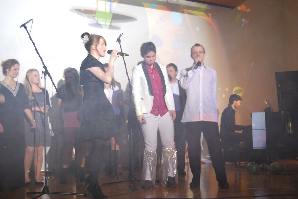 Angefangen vom Drehbuch (Viktoria Herr und Viola Schäffer), Probenplan, Regie (Christian Herr), Choreografie, Kulissen/Requisiten und Kostümen, Plakaten und Eintrittskarten nehmen die Chormitglieder alles selbst in die Hand. Wen wundert es da, dass die Rollen den einzelnen Darstellerinnen und Darstellern und die Kostüme wie auf den Leib geschneidert wirkten. Musikalisch begleitet wurden sie von den Stuttgarter Musikern Lukas Brenner (Klavier), Steffen Kistner (Bass) und Felix Schrack (Schlagzeug).