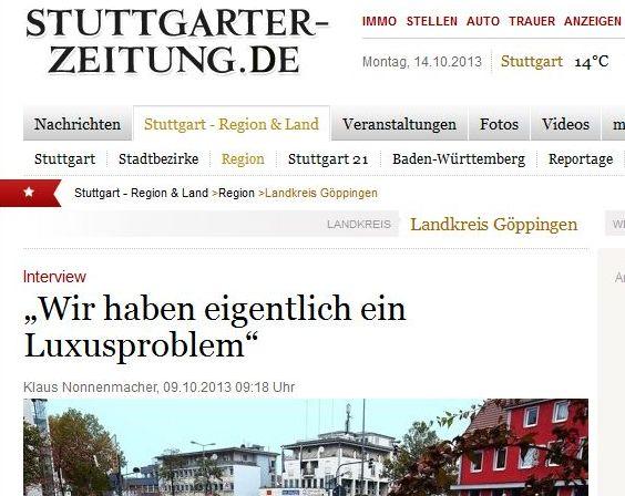 „Wir haben eigentlich ein Luxusproblem“ Interview mit OB Klaus Heininger in der Stuttgarter Zeitung 14.10.2013 - Hans-Ulrich Weidmann