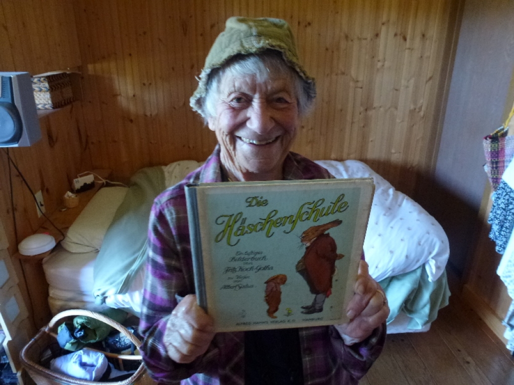 'Jetzt müsset mir aber wieder Englisch schwätza, damit die Sandy auch was versteht', meinte Lilo Levine Guggenheim, als der Eislinger Stadtrat Peter Ritz Ende September bei ihr in Saranac Lake vorbeischaute. Strahlende Augen hatte Lilo L.G. als sie die mitgebrachten Wibele vom Bäcker Bosch sah. Der Eislinger hatte seine Studienfreundin Sandra J. Welter in Saratoga Springs besucht und den Besuch in Saranac Lake wahrgemacht, den er 2011 Lilo Guggenheim bei ihrem Besuch in Göppingen in der Grabenstraße 20 versprochen hatte. Die jetzt 92jährige war damals freudig um den Stolperstein für ihre Mutter getanzt und hatte sich gefreut, dass die Kinder jetzt dort spielen können. Stolz führte sie den Besuchern auch ihr Studio mit Tanzeinlagen vor und ihre Kneippanlage am See und auf den Wiesen um ihr Haus und fragte wissbegierig die Besucher aus über Göppingen und Eislingen oder die jüdische Gemeinde in Saratoga Springs. Lebendiger kann man nicht sein als die Immer-noch-Göppingerin, die die Fotos der Wohlwert-Angestellten ihres Vaters kommentierte, als ob das alles gestern gewesen wäre. Lilo Levine Guggenheim auf der Porch mit Sandra J. Welter |