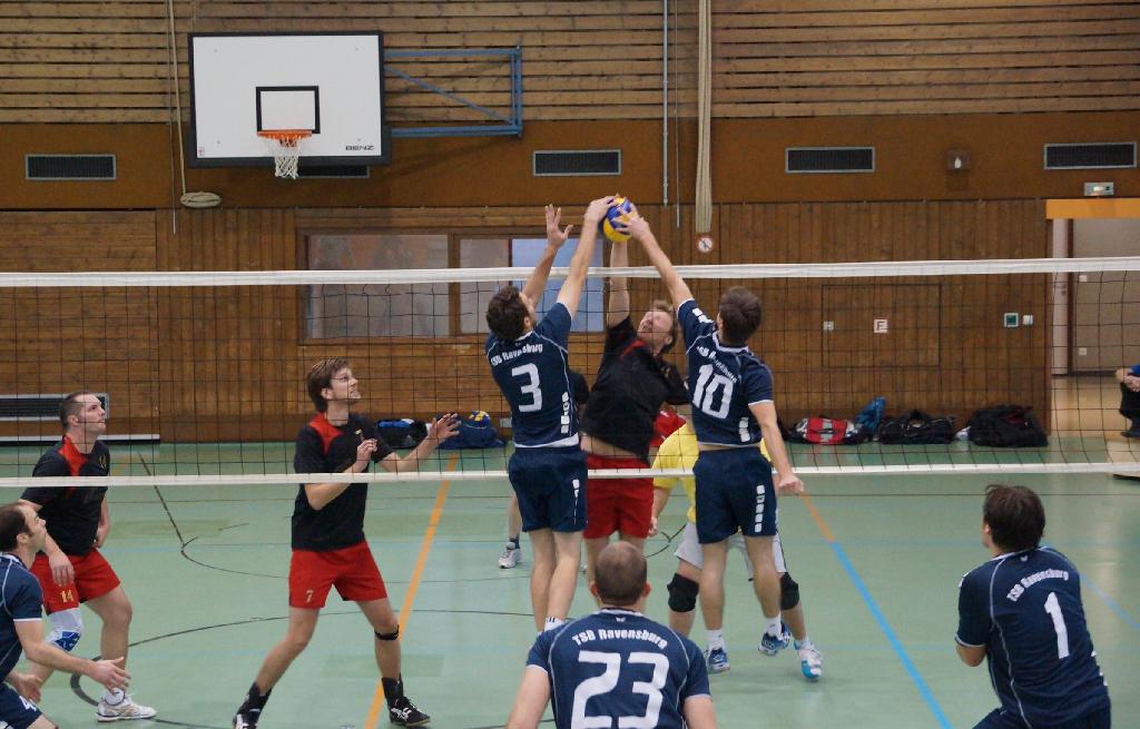 Dieses Wochenende empfing die erste Herrenmannschaft der TSG Eislingen die Gäste aus Ravensburg und Gebrazhofen zu ihrem ersten Heimspieltag. Im ersten Spiel ging es gegen den Oberligaabsteiger aus Ravensburg, welcher mit Georg Wiebel einen ehemaligen Nationalspieler in ihren Reihen hat (2.06m, 36 Jahre). Entsprechend motiviert gingen die Filstäler in die Partie und konnten sich sofort einen vier Punkte Vorsprung erspielen. Dieser schmolz jedoch Stück für Stück zusammen und als es dann in die entscheidende Phase ging konnten die TSG-Herren keinen Stich mehr landen. Die Routine der Ravensburger zeigte sich auch in den nächsten zwei Sätzen, in denen die TSG zeitweise sehr gut mitspielte. Am Ende setzte sich aber die an diesem Tag bessere Mannschaft durch. Anschließend stand die TSG im zweiten Spiel gegen den Aufsteiger aus Gebrazhofen gehörig unter Druck. Die TSG zeigte nicht ihr bestes Volleyball und baute den Gegner immer mehr auf, sei es durch Unkonzentriertheit oder durch fragwürdige Schiedsrichterentscheidungen und den anschließenden Diskussionen. Am Ende gewann man mit großer Mühe mit 3:1. Aus einer homogenen, jedoch mittelmäßigen Teamleistung sollte man Swen Schuppler hervorheben, der in den entscheidenden Situationen quasi im Alleingang durch seine Schnellangriffe die TSG im Spiel hielt und am Sieg maßgeblich beteiligt war. Anschließend bedankten sich die TSG Herren bei ihren treuen Fans, welche es an diesem Spieltag nicht immer einfach hatten. Nach vier Spielen steht die TSG mit 5 Punkten auf Tabellenplatz Vier, wobei ein Sieg beim direkten Nachbarn TV Rottenburg in zwei Wochen nötig sein wird, um diesen zu halten.