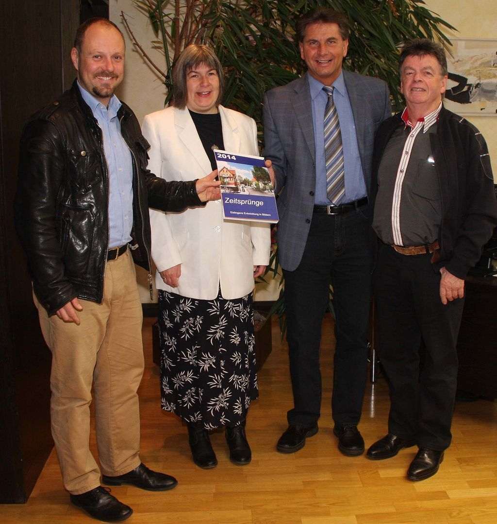 Das erste Exemplar des Kalenders bekam nun Oberbürgermeister Klaus Heininger vom CDU Stadtverbandsvorsitzenden Axel Raisch, Sponsor Reinhard Geckler und Ideengeberin und Mitgestalterin des Kalenders, Cornelia Juchert, überreicht.