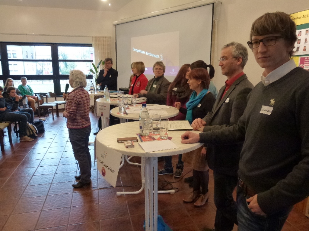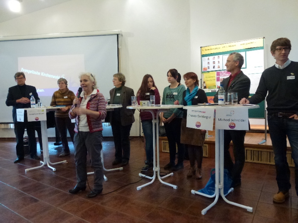Einen mit etwa 130 Jugendlichen gut gefüllten Saal der Christuskirche fanden die sechs Kandidatinnen und Kandidaten für die Synodalwahl am 1. Dezember 2013 vor. Die Studienleiterin Ingrid Held hatte die Idee umgesetzt, die jetzt mit 14 Jahren erstmals wahlberechtigten Schülerinnen und Schüler der Klassen 9 aller Eislinger Schulen mit den SynodalkandidatInnen zusammen zu führen.