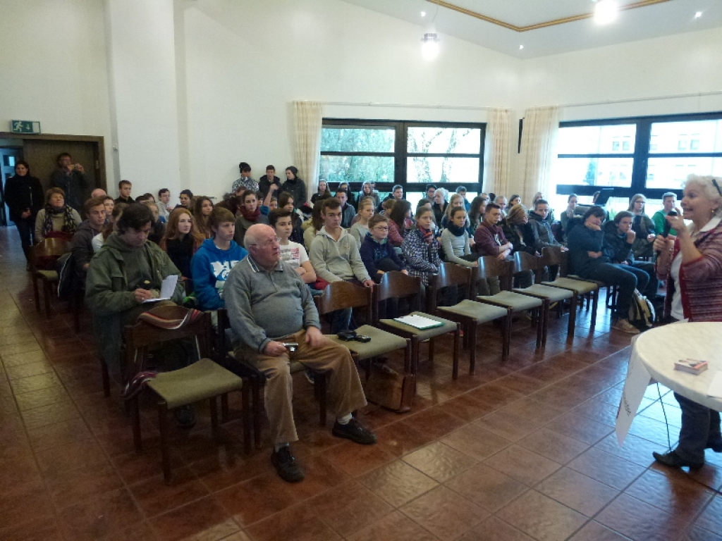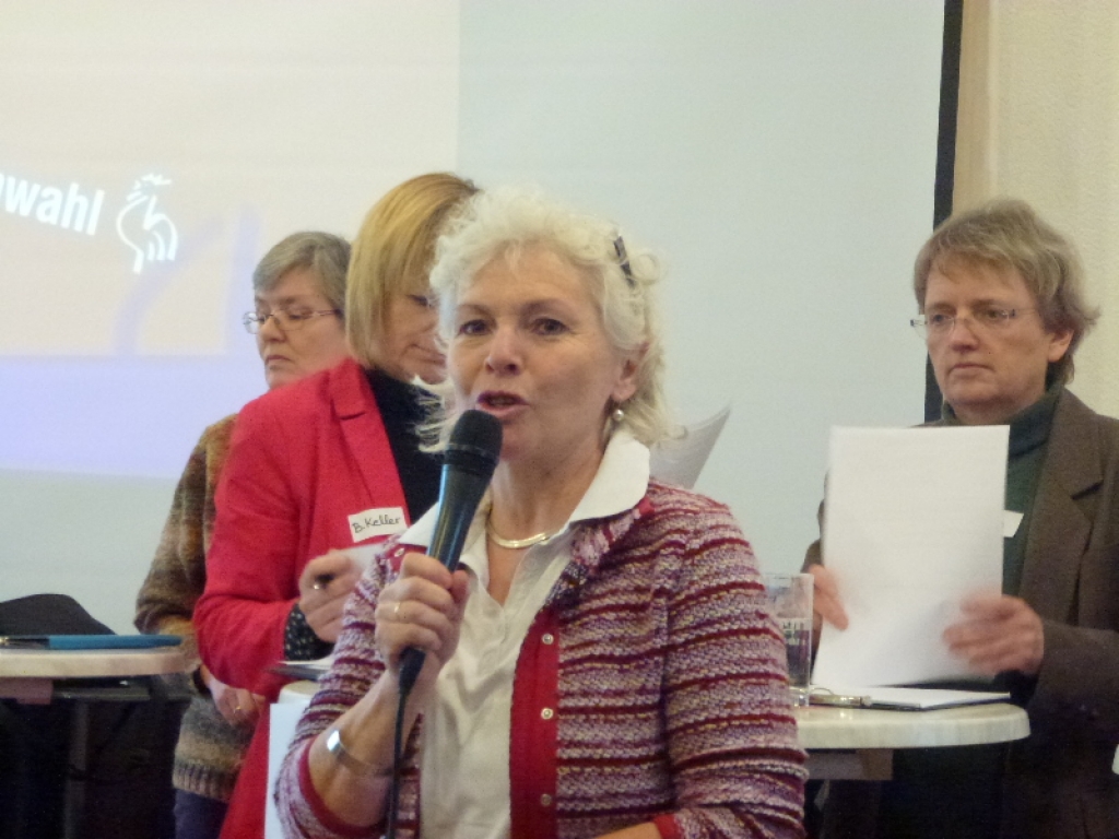 Jugendliche hören zu |  Schuldekanin Leube begrüßt, Ingrid Held mit grünem Schal |  Stepanek, Maier, verdeckt Keller, Kröh, das Schülerteam, Dehlinger, Schneider (von li) |  der volle Saal |  zweite Hälfte |  Fragen an die KandidatInnen |  die im Publikum sitzen |  Schuldekanin Annette Leube muntert auf, hinter ihr Maier, Keller und Gröh |  Die KandidatInnen auf Plakaten |  Die Frage nach der Haltung zum Sex vor der Ehe stellt eine Schülerin |