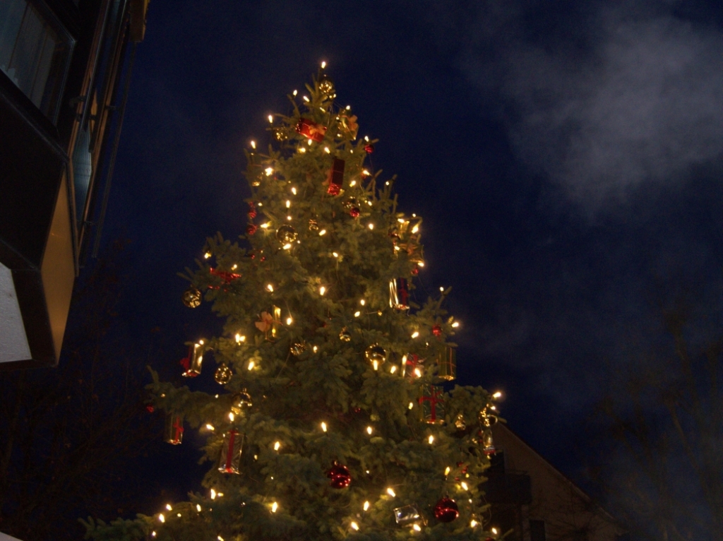 Am Freitag vor dem Weihnachtsmarktwochenende erstrahlte der Weihnachtsbaum an der Volksbank in seinem Lichterglanz.