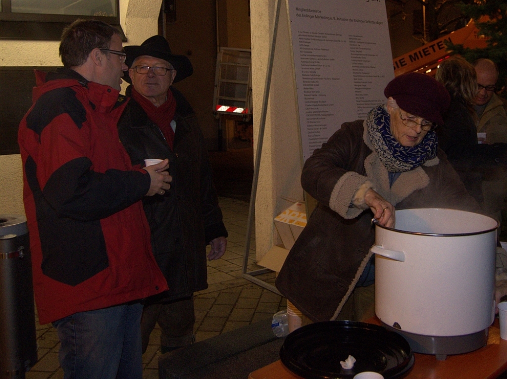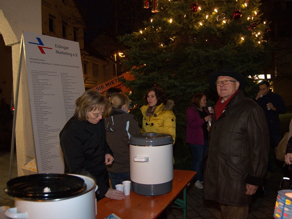 Zu adventlicher Musik wurde Glühwein und Kinderpunsch von Mitgliedern des Eislinger Marketing e.V. kostenlos ausgeschenkt.