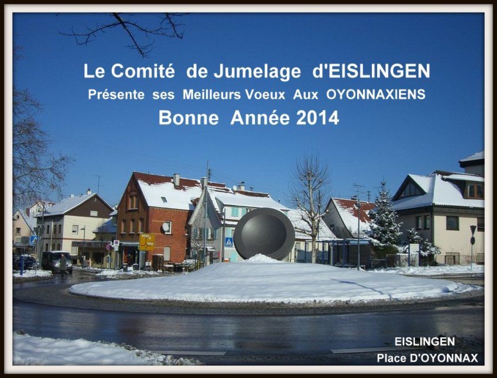 Neujahrswünsche aus Eislingen und Oyonnax, digitaler Stadtrundgang Eislinger Sender ziert Neujahrskarte in Oyonnax 02.1.2014 - Hans-Ulrich Weidmann
