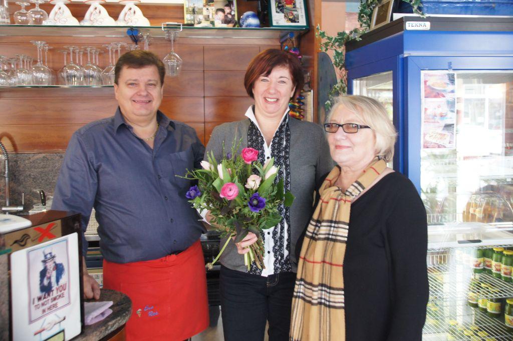 Der traditionelle Blumenstrauß der Stammgäste, überreicht von Marlis Wahl