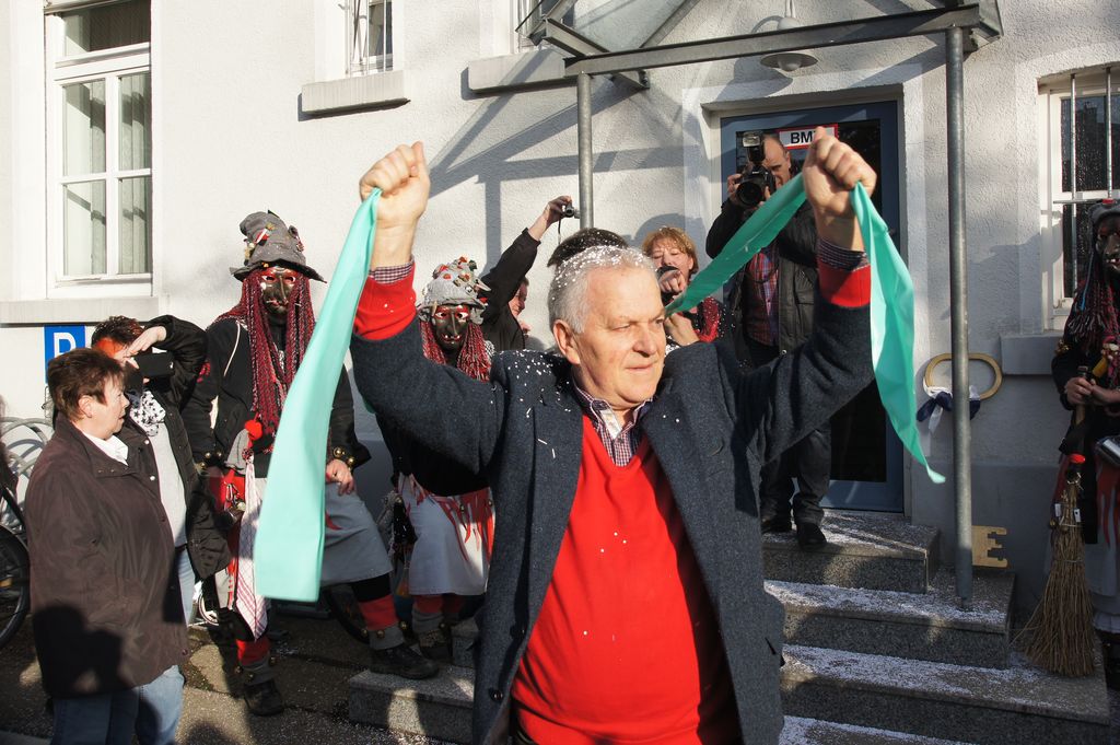 Oberbürgermeister strippt vor der Narrenschar Bruno Mörixbauer und Klaus Heininger zogen an zwei Strängen 28.2.2014 - Hans-Ulrich Weidmann