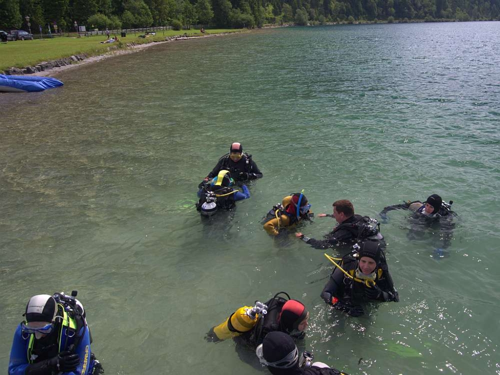Nach Abschluss der Hallenbadausbildung werden die notwendigen Freiwassertauchgänge an einem geeigneten Ausbildungssee absolviert.